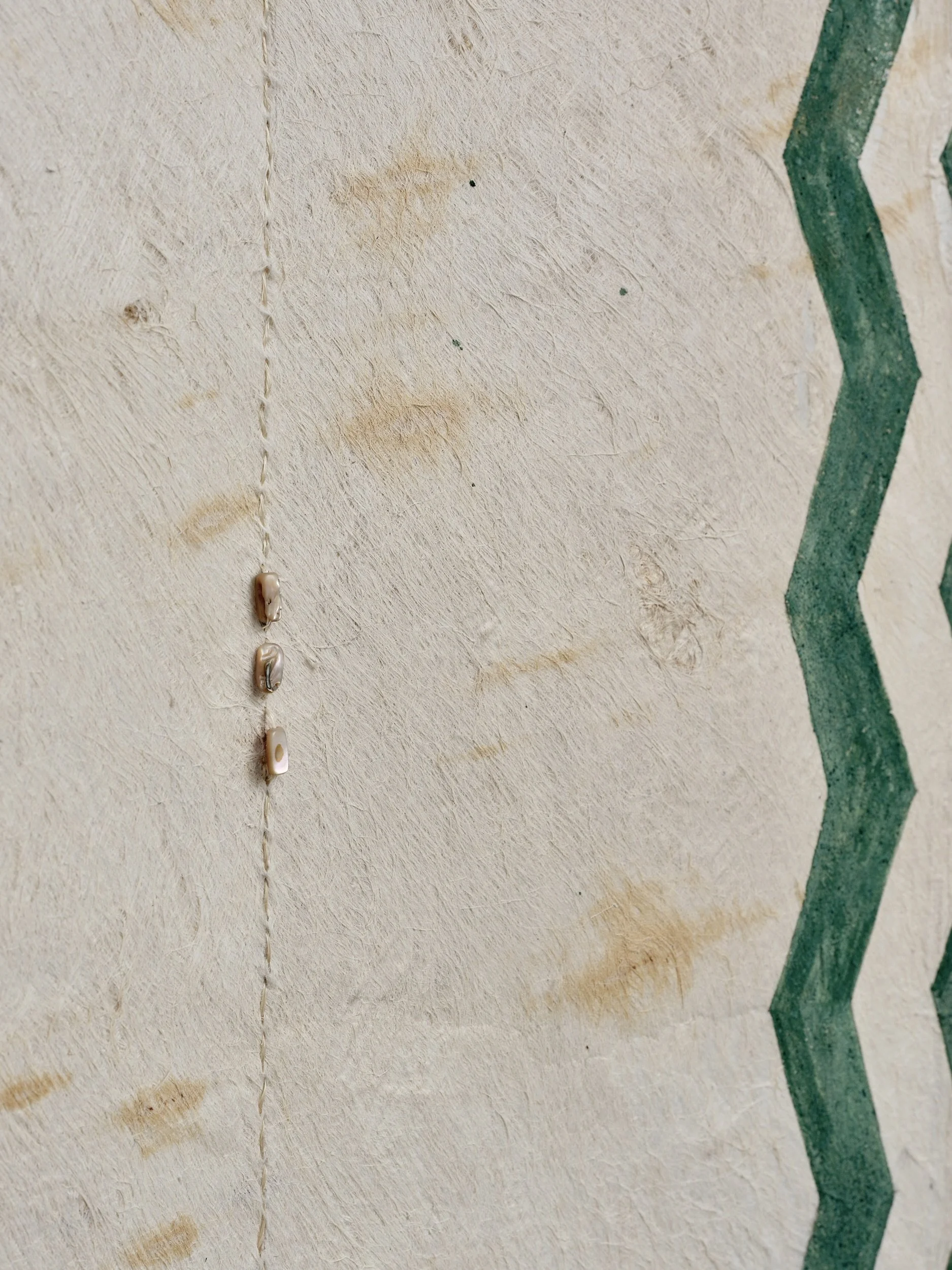 Atarangi Anderson E noho ana au i te wā, 2026 Aute, muka, pāua, uku 1940 x 800
