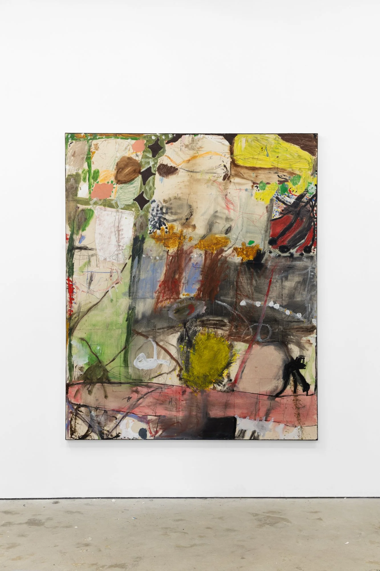 Hoist the caterwauling child, 2026 Oil, acrylic, pencil, calico on canvas 1700 x 1400