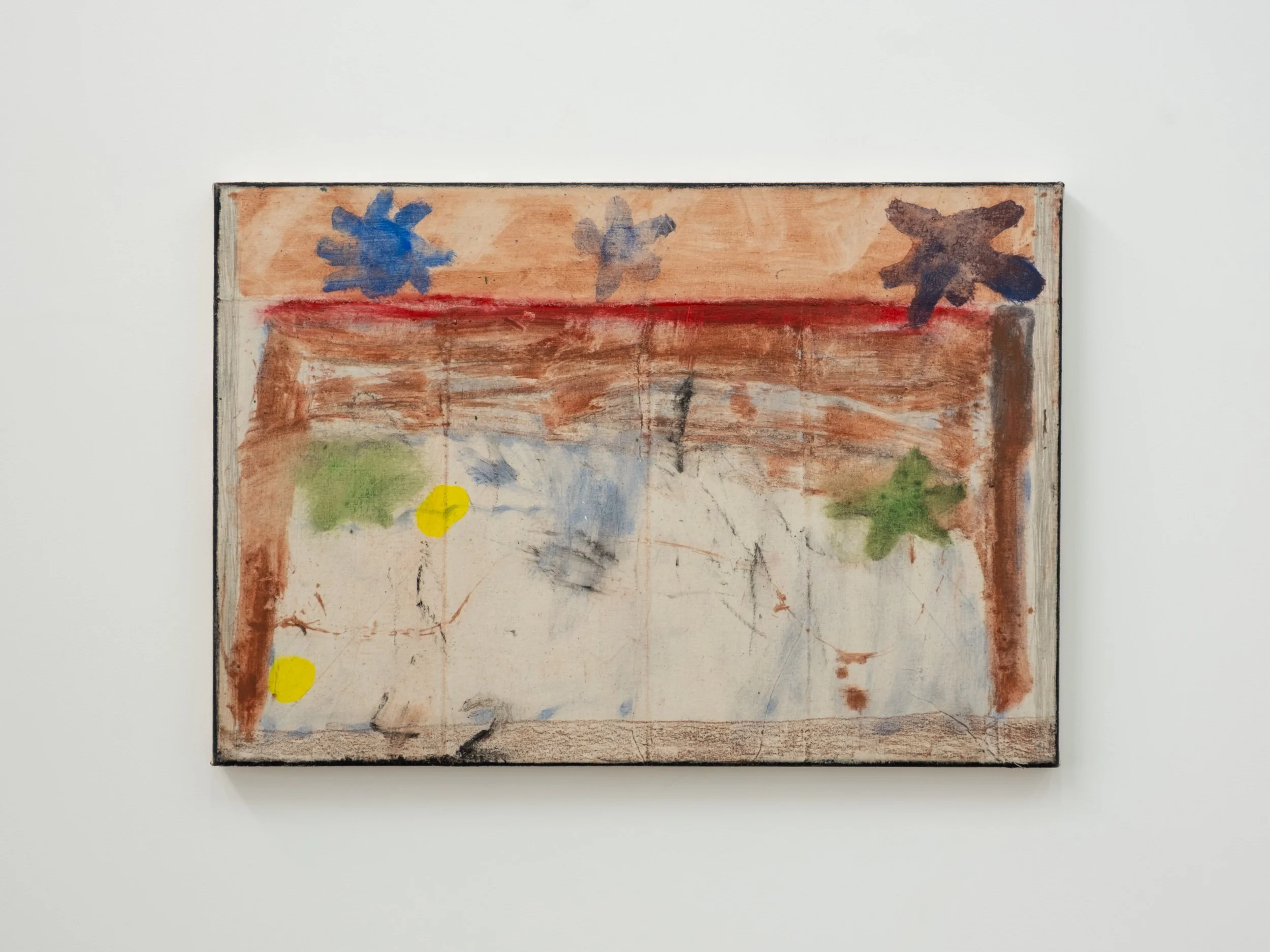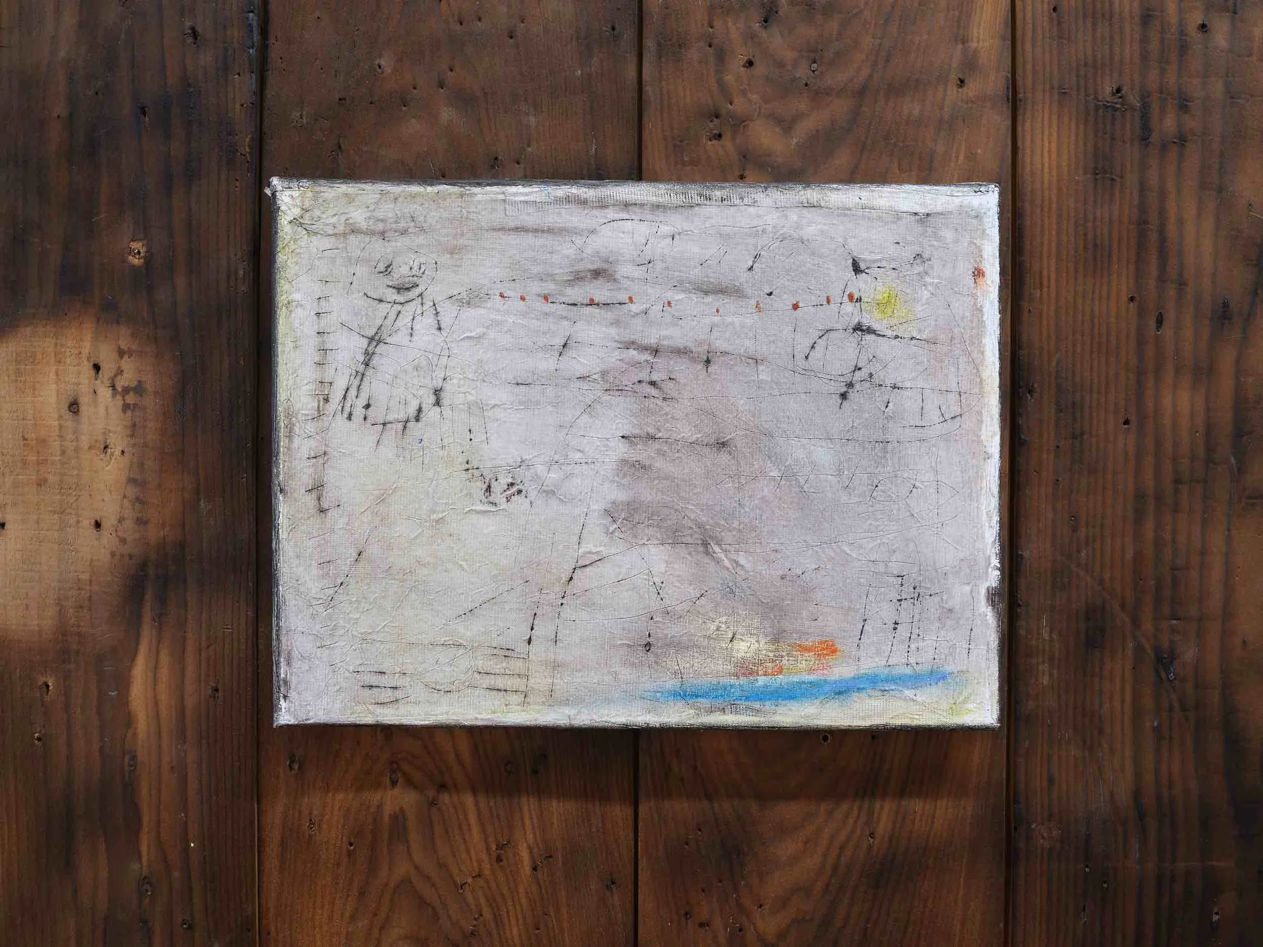 Oil, pencil, pastel and calico on canvas 450 x 650